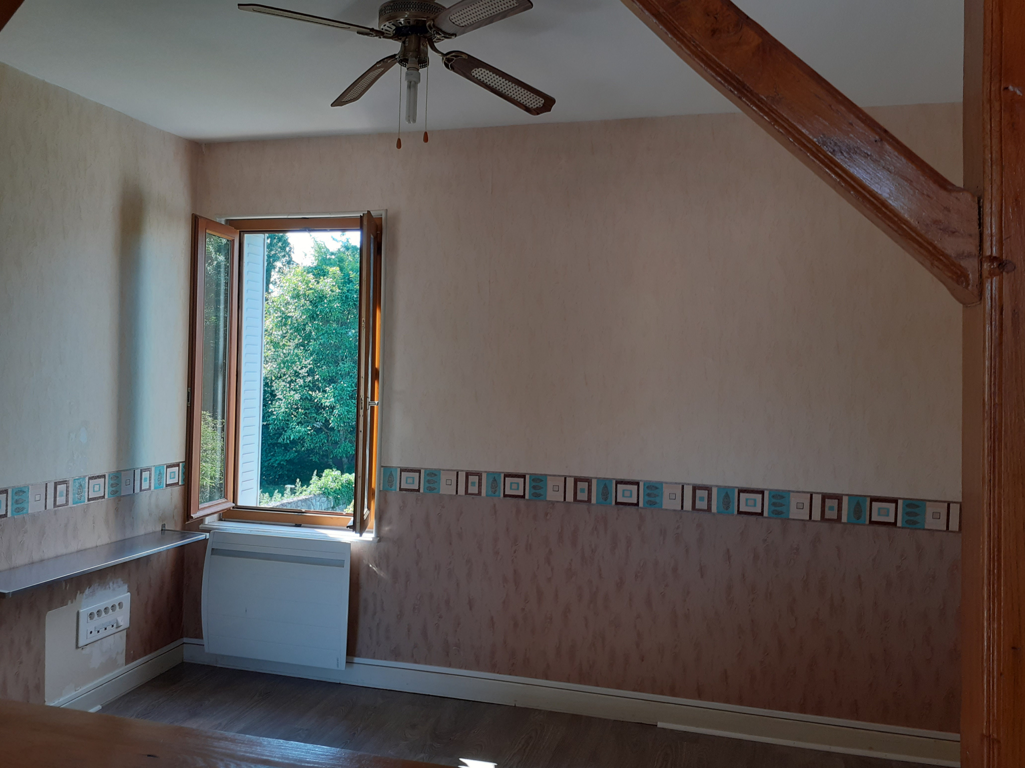 Un appartement de type F3 sis à LAPALISSE, composé d'une cuisine ouverte sur séjour, de deux chambres et d'une salle d'eau avec WC.