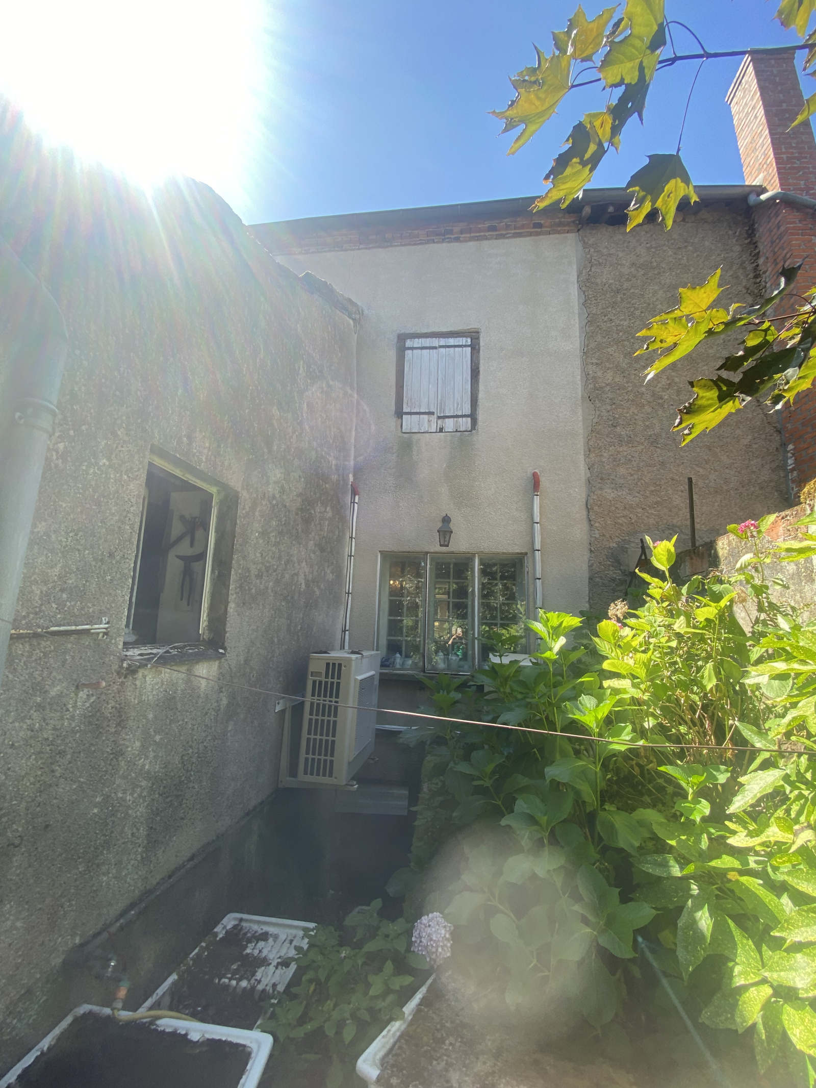 La maison est équipée de menuiseries en simple vitrage, l’électricité est à remettre aux normes, et le système de chauffage repose actuellement sur le bois et la climatisation réversible au rez-de-chaussée.