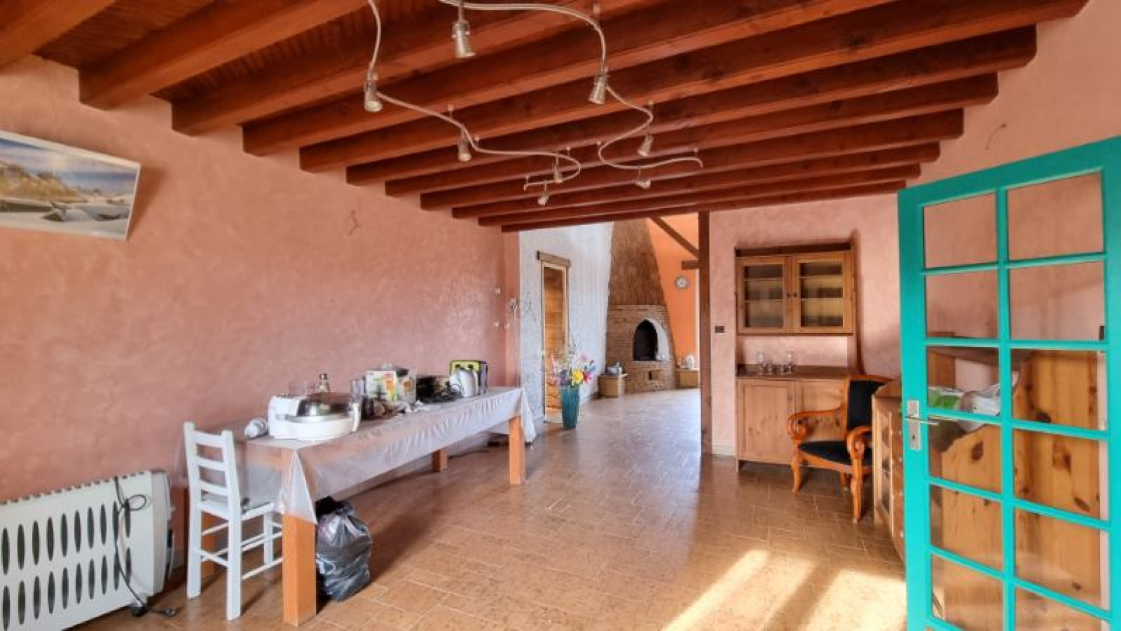 Maison d'habitation d'environ 157m² habitables composée au rez-de-chaussée: d'une cuisine aménagée et équipée de 24m² avec espace repas, une véranda d'environ 20m² avec chauffage au sol et baies coulissantes, et un grand séjour de 36m². Une pièce à usage de chaufferie / buanderie de 10m² avec un douche et un WC.